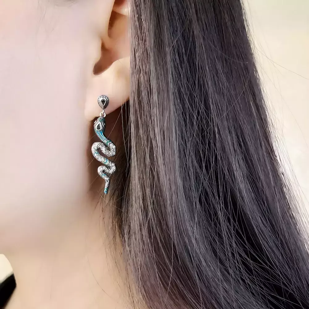 Os Brincos Cobra Verde Banhado em Prata são uma peça intrigante e elegante, perfeita para quem busca um acessório que mescle ousadia e sofisticação. Feitos em prata 925, esses brincos apresentam um design em forma de cobra, simbolizando transformação e renovação, com detalhes em esmalte azul vibrante que trazem um toque de mistério e cor. Seu acabamento polido e a riqueza dos detalhes fazem destes brincos uma escolha marcante para quem deseja expressar sua personalidade com estilo.