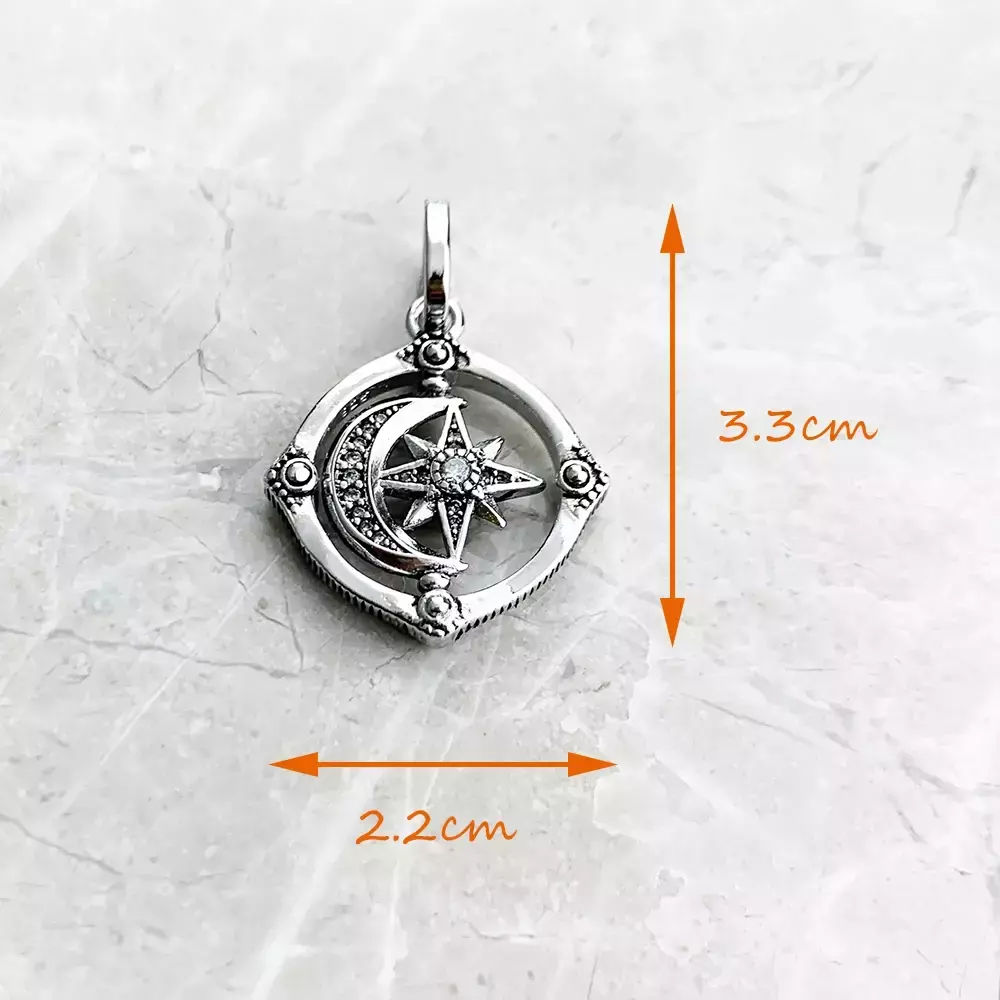 Adquira agora o Pingente Lua e Estrela Giratório Banhado em Prata e adicione um toque de misticismo e elegância ao seu visual!