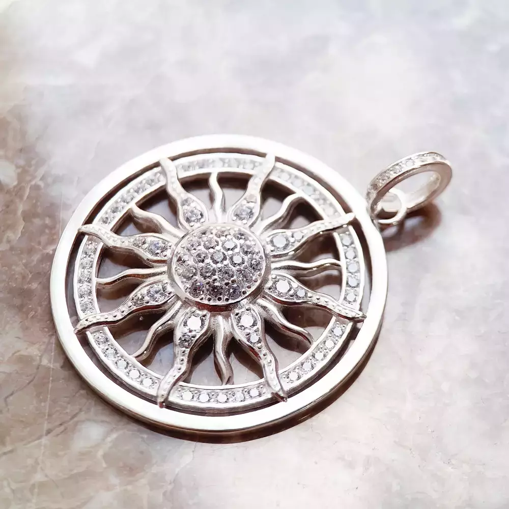 Adquira agora o Pingente Sol Branco Banhado em Prata e adicione um toque de brilho e elegância ao seu visual!