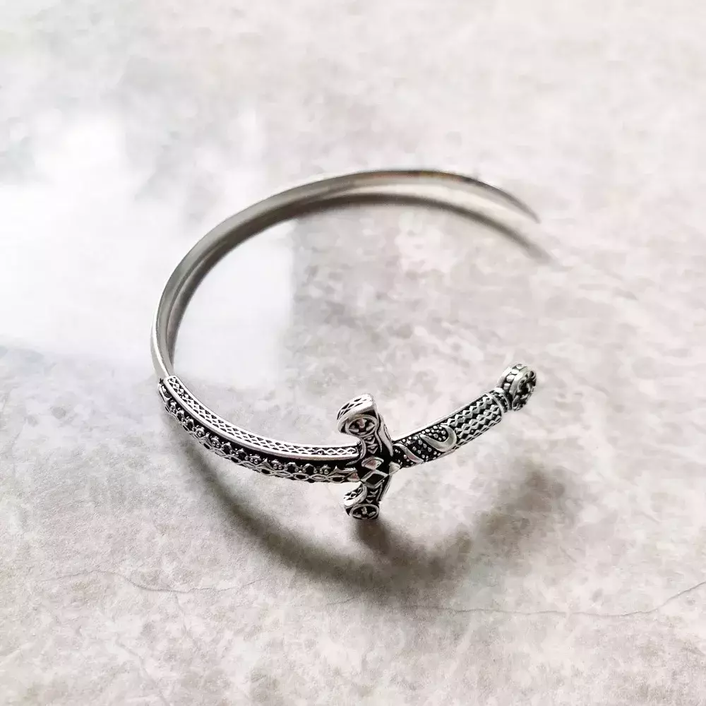 Adquira agora a Pulseira Bracelete Espada Banhada em Prata e adicione um toque de força e estilo único ao seu visual!